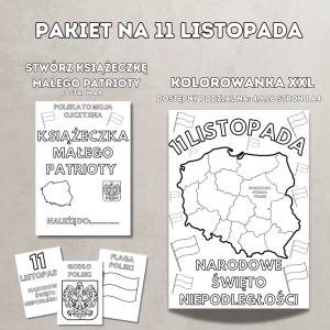 Materiały przygotowane są w formacie PDF – gotowe do druku i wielokrotnego wykorzystania. Pakiet doskonale sprawdzi się podczas zajęć tematycznych z okazji Święta Niepodległości, lekcji historii, patriotycznych uroczystości i pracy wychowawczej. „11 listopada – Mały Patriota” to idealny zestaw, który uczy dzieci miłości do ojczyzny w ciepły, zrozumiały i twórczy sposób.