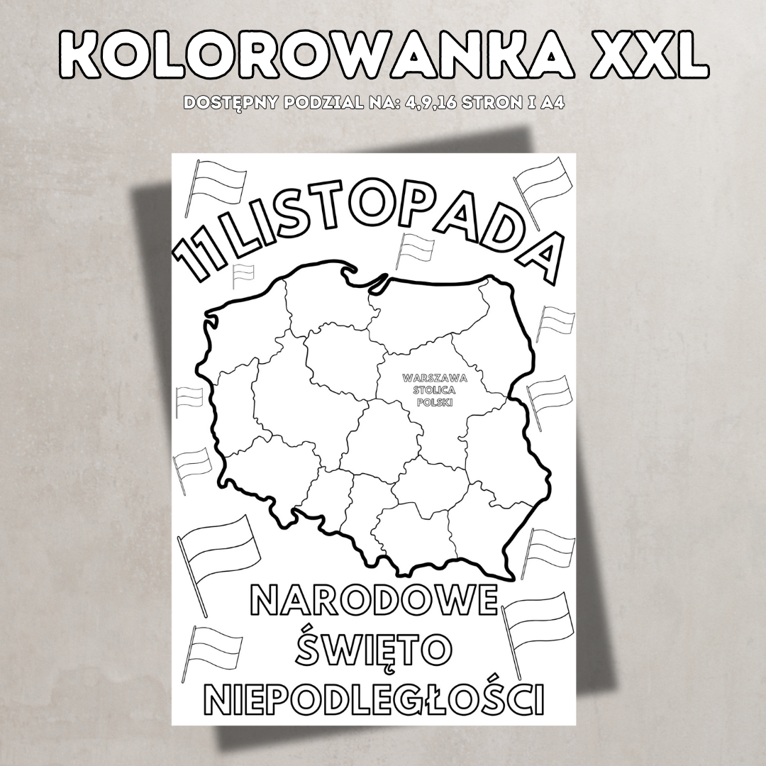 • Kolorowanki patriotyczne w formacie A4 i XXL – różne wersje kolorowanek (4, 9 i 16 stron), które można wykorzystać indywidualnie lub grupowo, także w dużym formacie na tablicy lub podłodze.