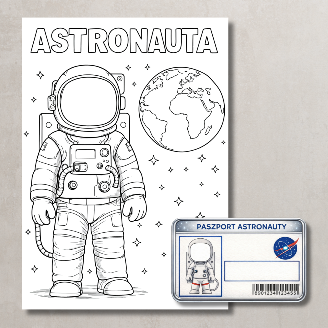 Astronauta XXL do sklejenia Duża postać astronauty do wydruku i złożenia. Sprawdzi się jako dekoracja, element kącika tematycznego lub tło do zdjęć. Po złożeniu tworzy efektowną, przestrzenną ozdobę.