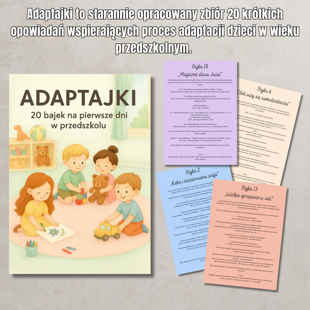 „Adaptajki” to zestaw 20 krótkich, ciepłych opowiadań, które wspierają dzieci w procesie adaptacji do przedszkola.