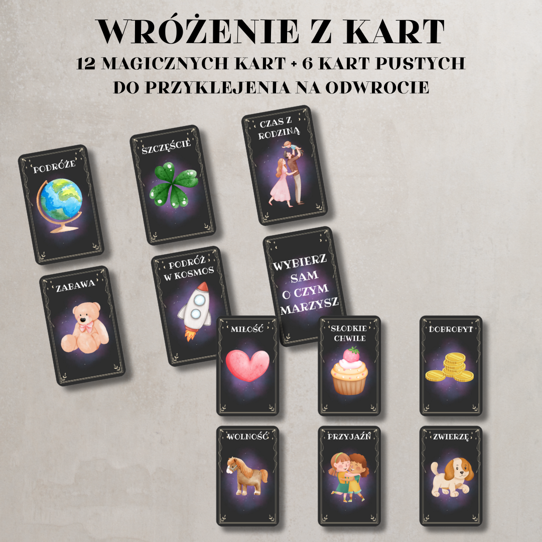 • Wróżby andrzejkowe – karty i losy – zestaw zabawnych przepowiedni, które pobudzają wyobraźnię i dają mnóstwo radości.