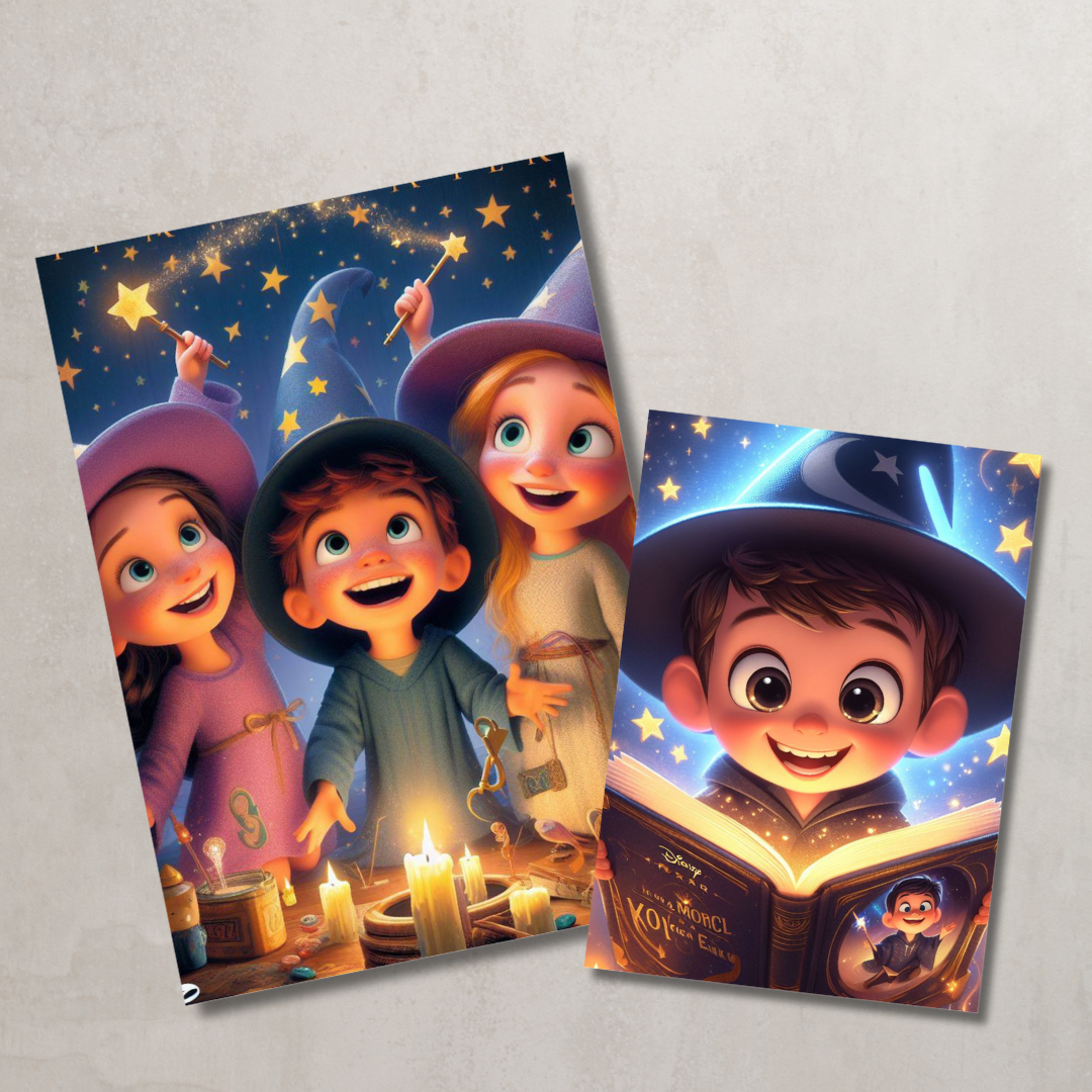 • Plakaty A3 i A4 – tematyczne ilustracje tworzące magiczny klimat.