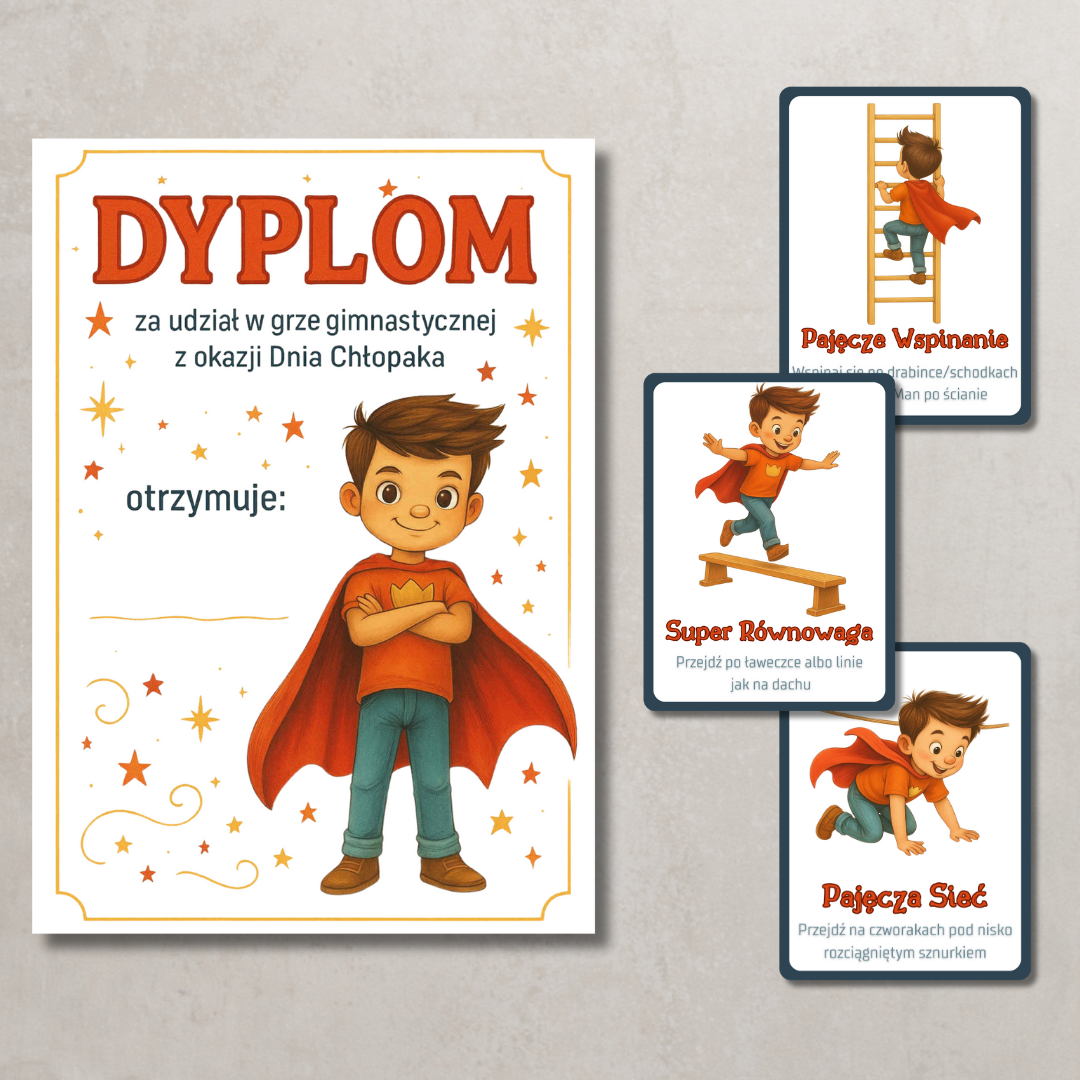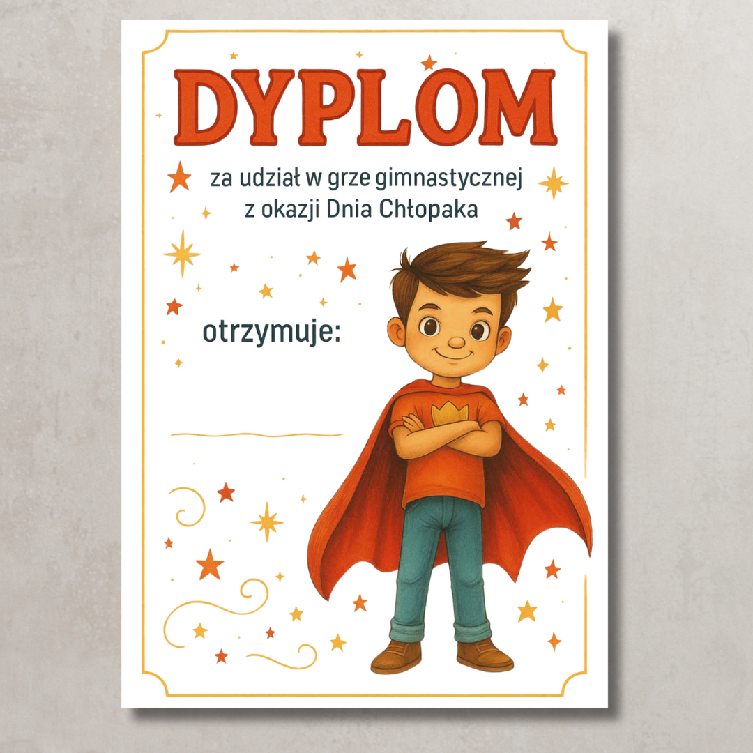• Dyplom za udział w grze gimnastycznej – nagroda dla każdego uczestnika zabawy.