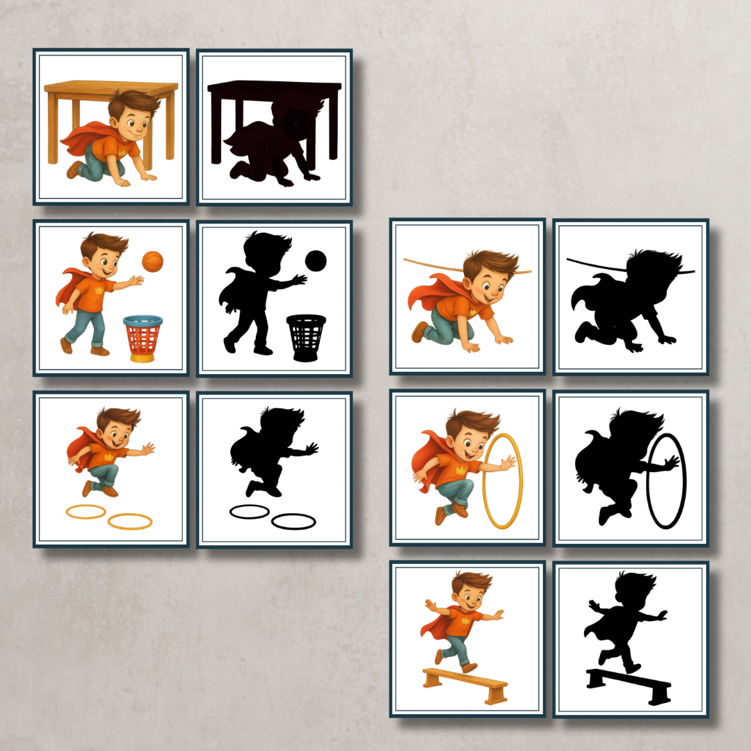 • Karty dopasuj cień – ćwiczenie spostrzegawczości z motywem ruchowym.