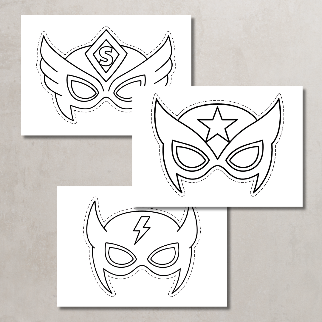 • Maski superbohaterów do wycinania i kolorowania – wspaniały rekwizyt do zdjęć lub przedstawienia.