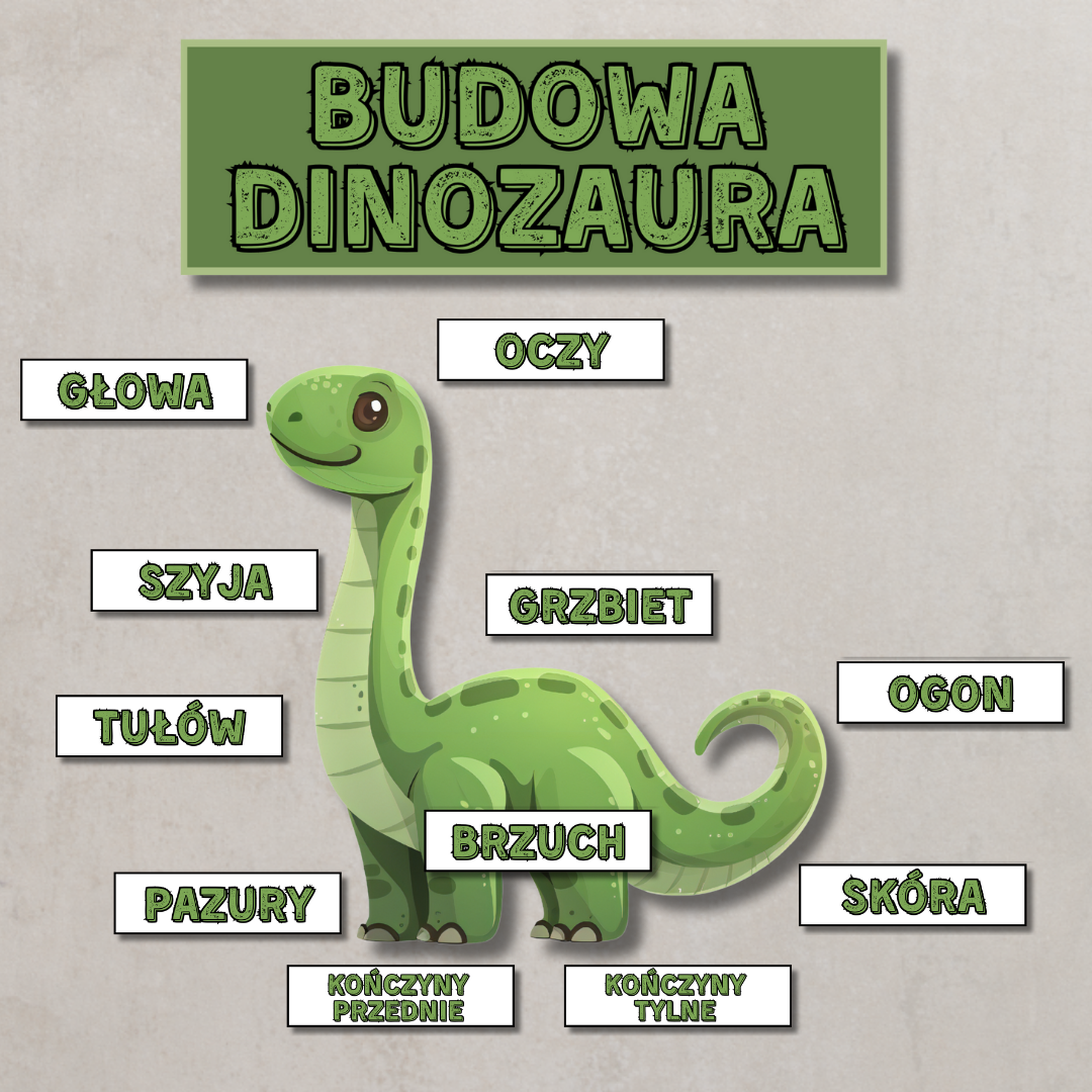 • Budowa dinozaura – plansza edukacyjna z opisanymi częściami ciała