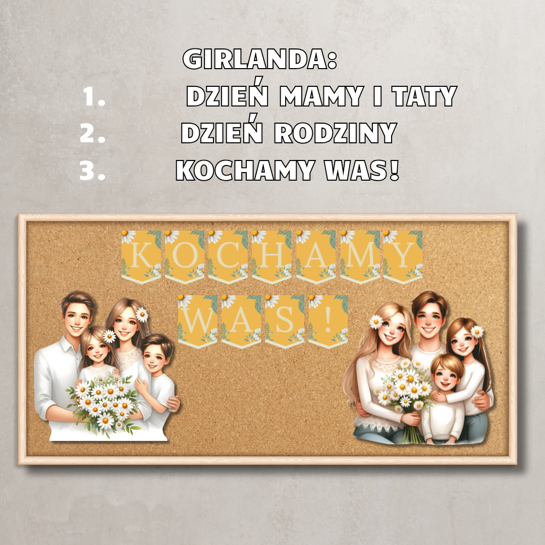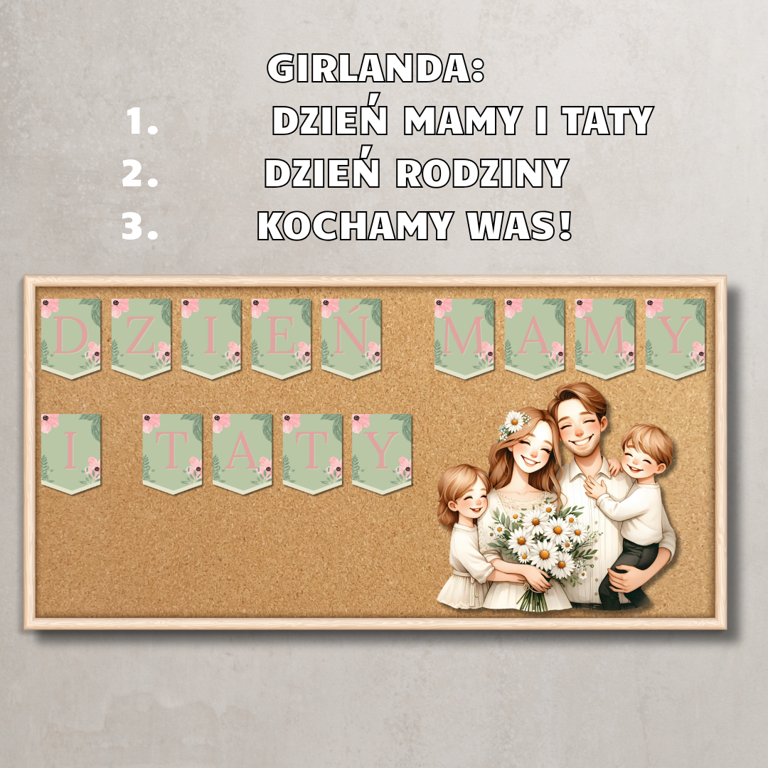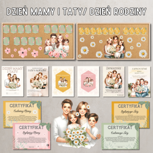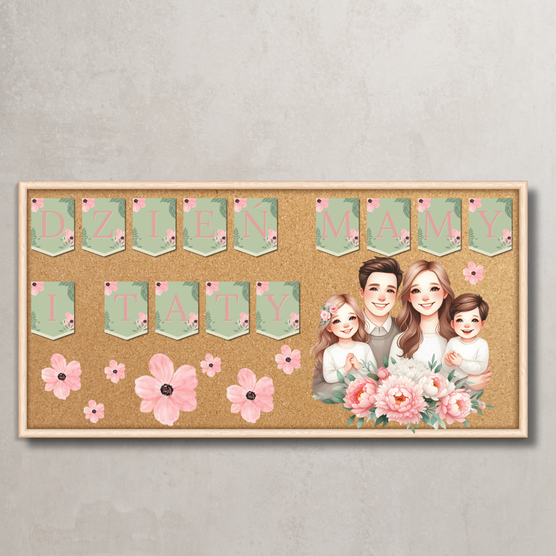 Piękny zestaw przygotowany z myślą o świętowaniu Dnia Mamy i Taty lub Dnia Rodziny w przedszkolu, szkole czy żłobku. Wszystkie elementy tworzą spójną, elegancką całość – pełną ciepła, miłości i rodzinnego klimatu.