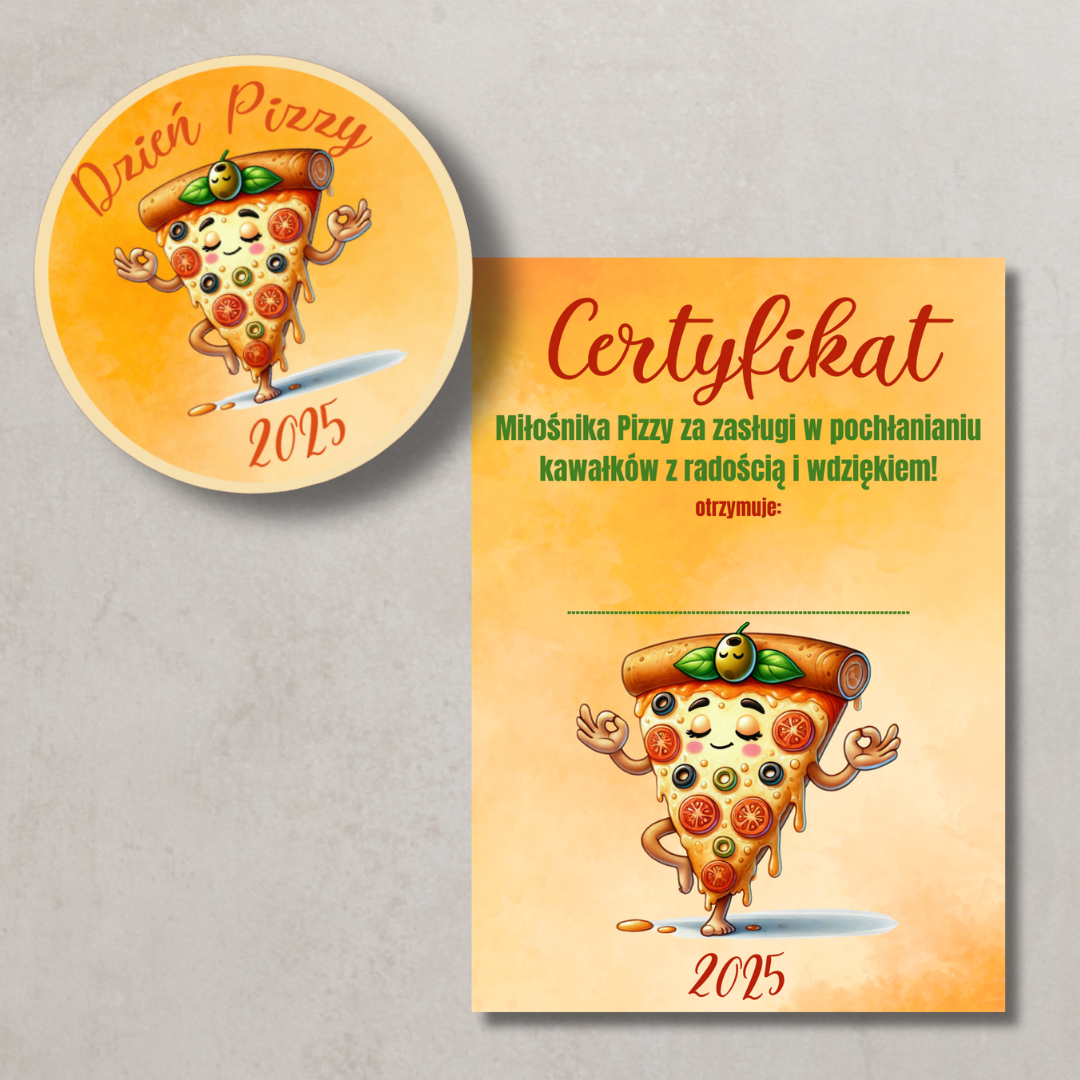 • Certyfikat i odznaka „Miłośnika Pizzy” – dla każdego uczestnika zabawy, jako pamiątka i nagroda za udział w dniu pizzy.