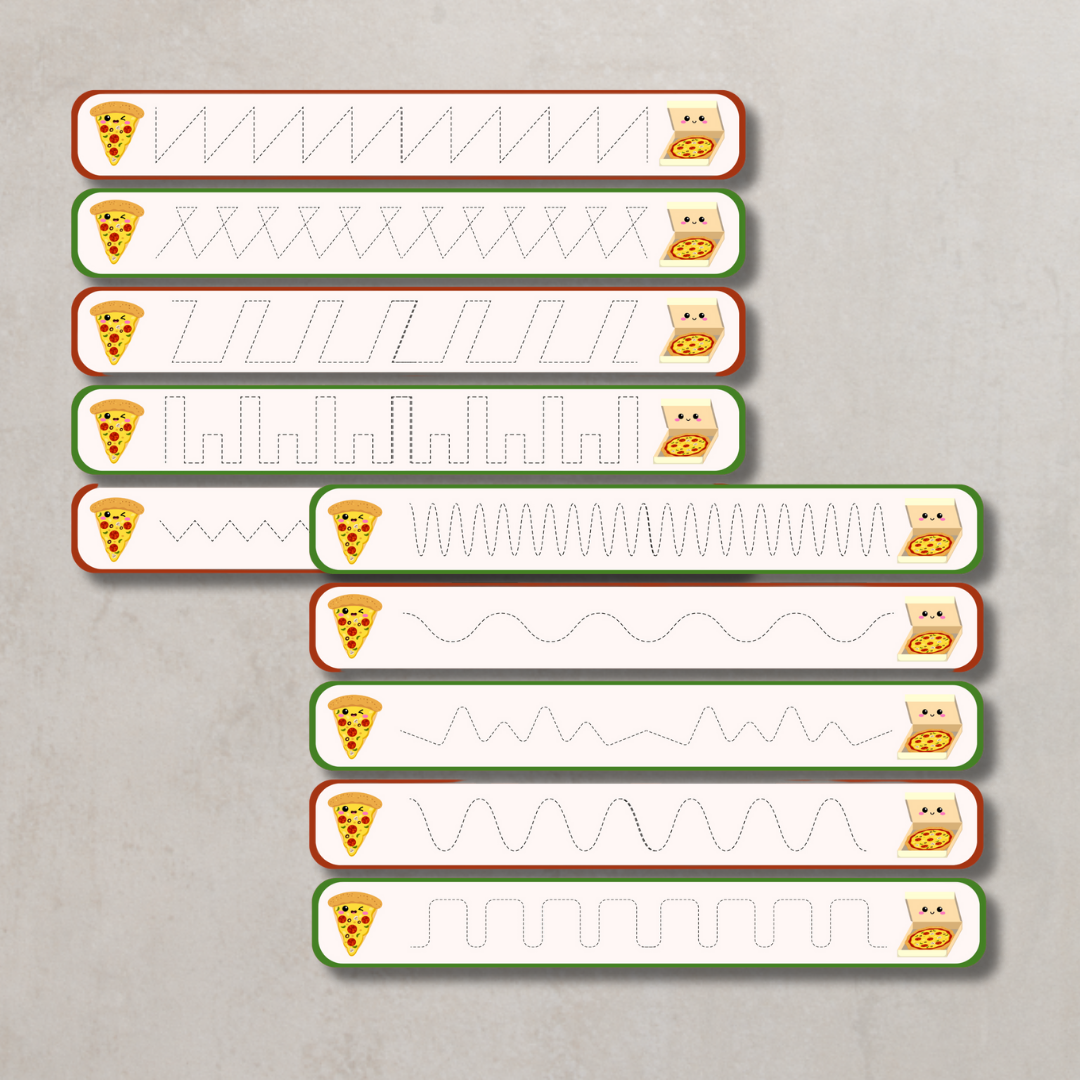 • Karty pracy „Popraw po śladzie” – zestaw ćwiczeń grafomotorycznych dla najmłodszych, z pizzowym motywem.