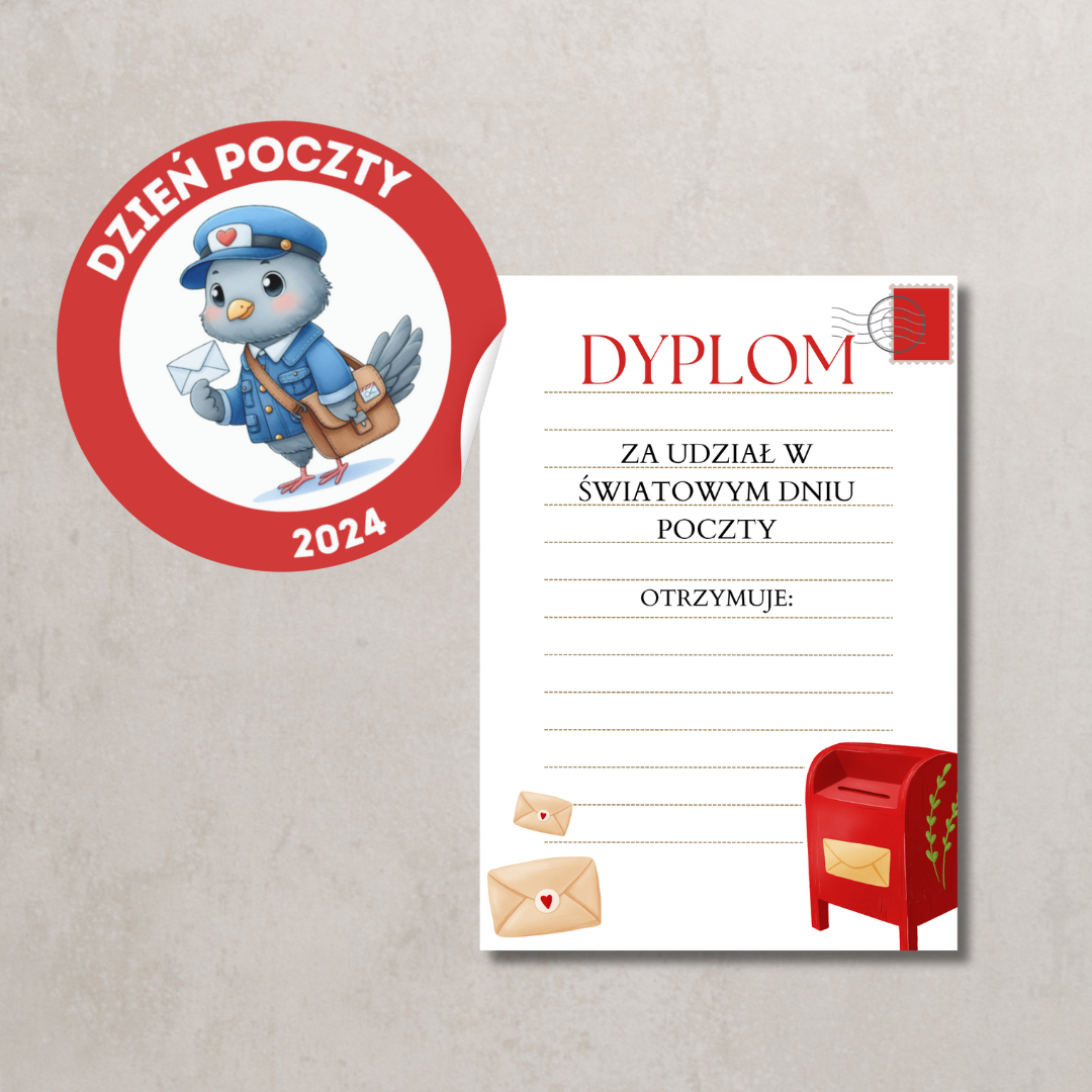 • Dyplom za udział w Dniu Poczty – pamiątkowy dokument dla każdego uczestnika zajęć.