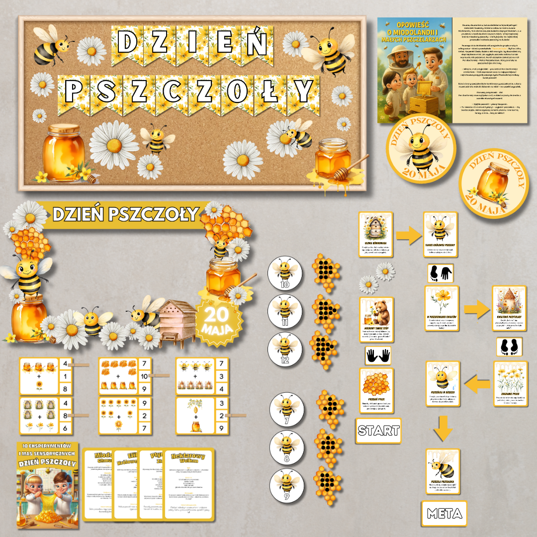 Zestaw „Dzień Pszczoły” to kompleksowy materiał edukacyjny stworzony z myślą o nauczycielach, wychowawcach i rodzicach, którzy chcą w ciekawy sposób przybliżyć dzieciom świat pszczół, ich znaczenie w przyrodzie i pracy człowieka. Doskonały do wykorzystania w przedszkolach, szkołach i podczas zajęć tematycznych.