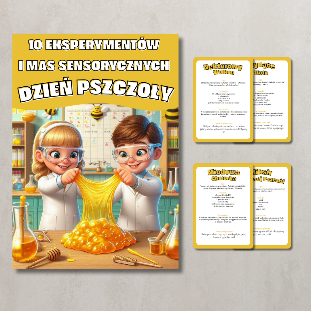 5. 10 eksperymentów i mas sensorycznych na Dzień Pszczoły Zbiór pomysłów na zabawy badawcze i sensoryczne – m.in. „Miodowa chmurka”, „Nektarowy wulkan”, „Eliksir królowej pszczół”. Wszystkie eksperymenty opisane krok po kroku.