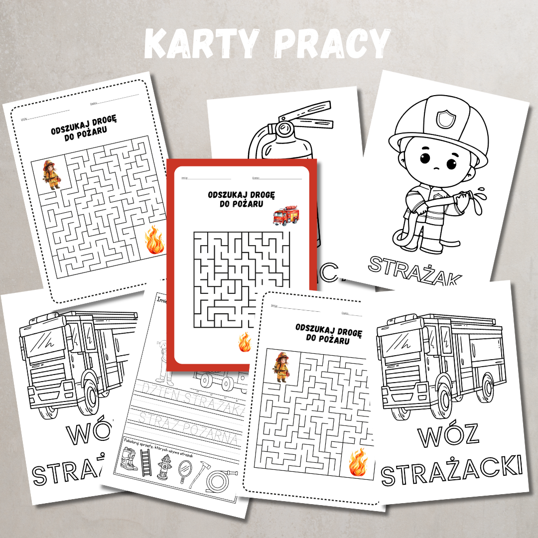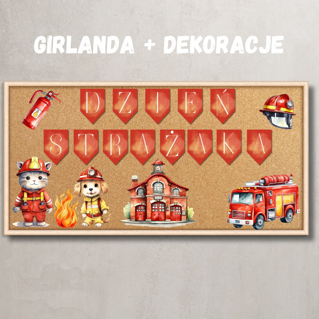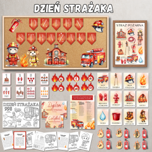 Kompletny pakiet materiałów dydaktycznych i dekoracyjnych przygotowany z myślą o obchodach Dnia Strażaka. Zestaw łączy elementy edukacyjne, zabawowe i plastyczne, dzięki czemu dzieci mogą poznać zawód strażaka w ciekawy i angażujący sposób.