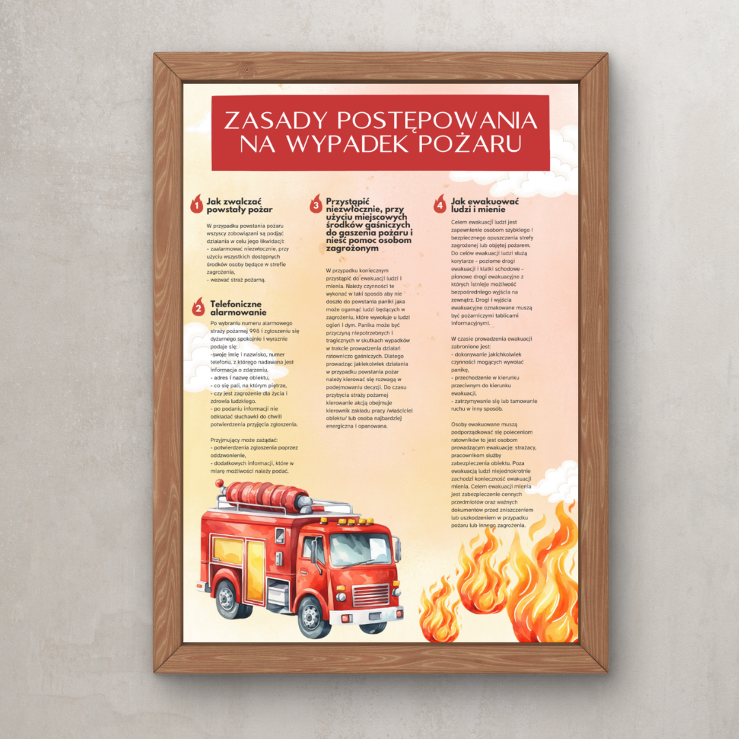 • Zasady postępowania na wypadek pożaru – plansze informacyjne w przystępnej, obrazkowej formie.