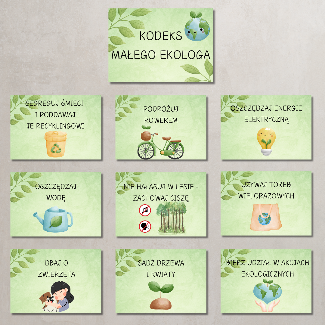 • Kodeks Małego Ekologa – zestaw zasad ekologicznego zachowania w atrakcyjnej graficznie formie.