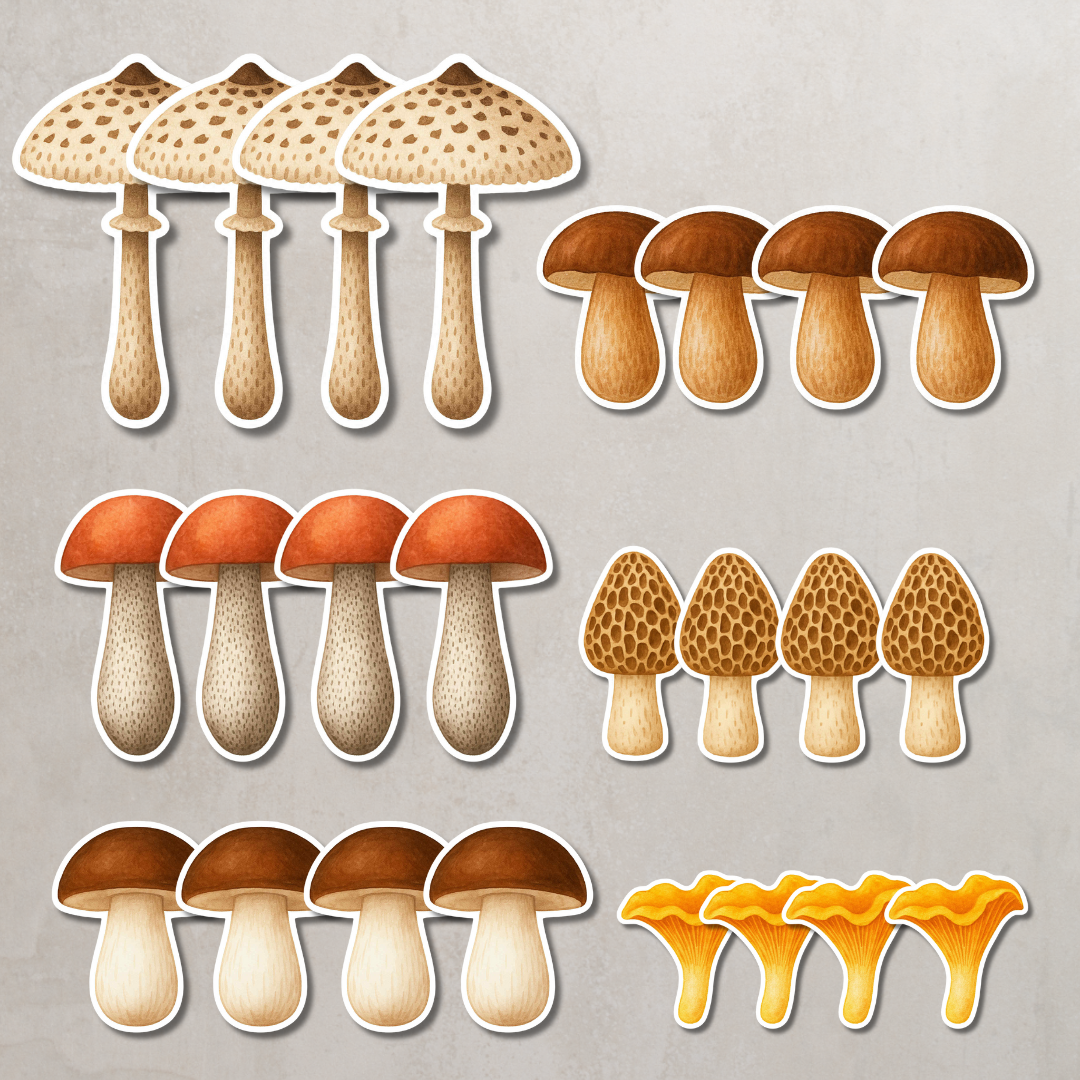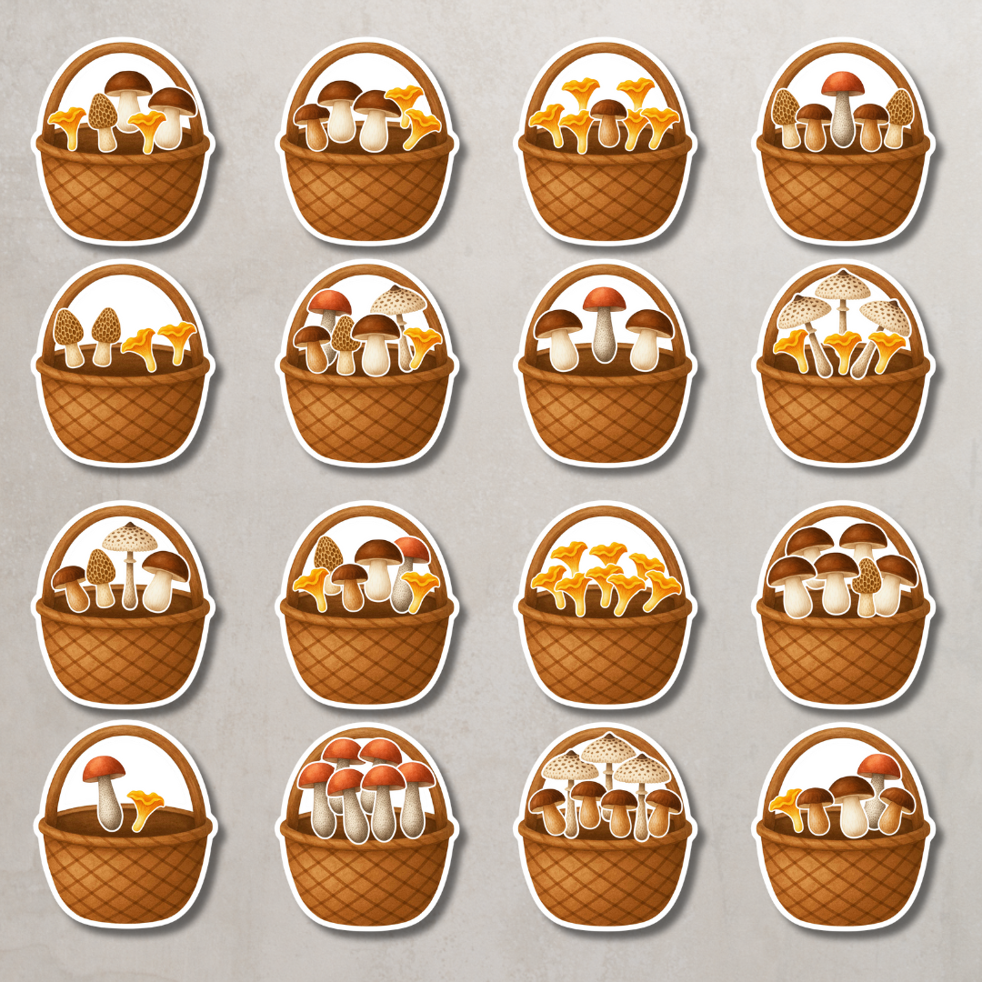 • 40 koszyków zapełnionych wzorami – zróżnicowane układy grzybów do odwzorowania,