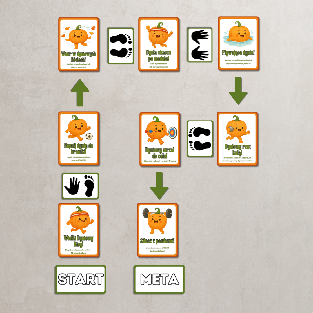 - 12 kart z wyzwaniami – każde zadanie to ruch, śmiech i dyniowa moc!