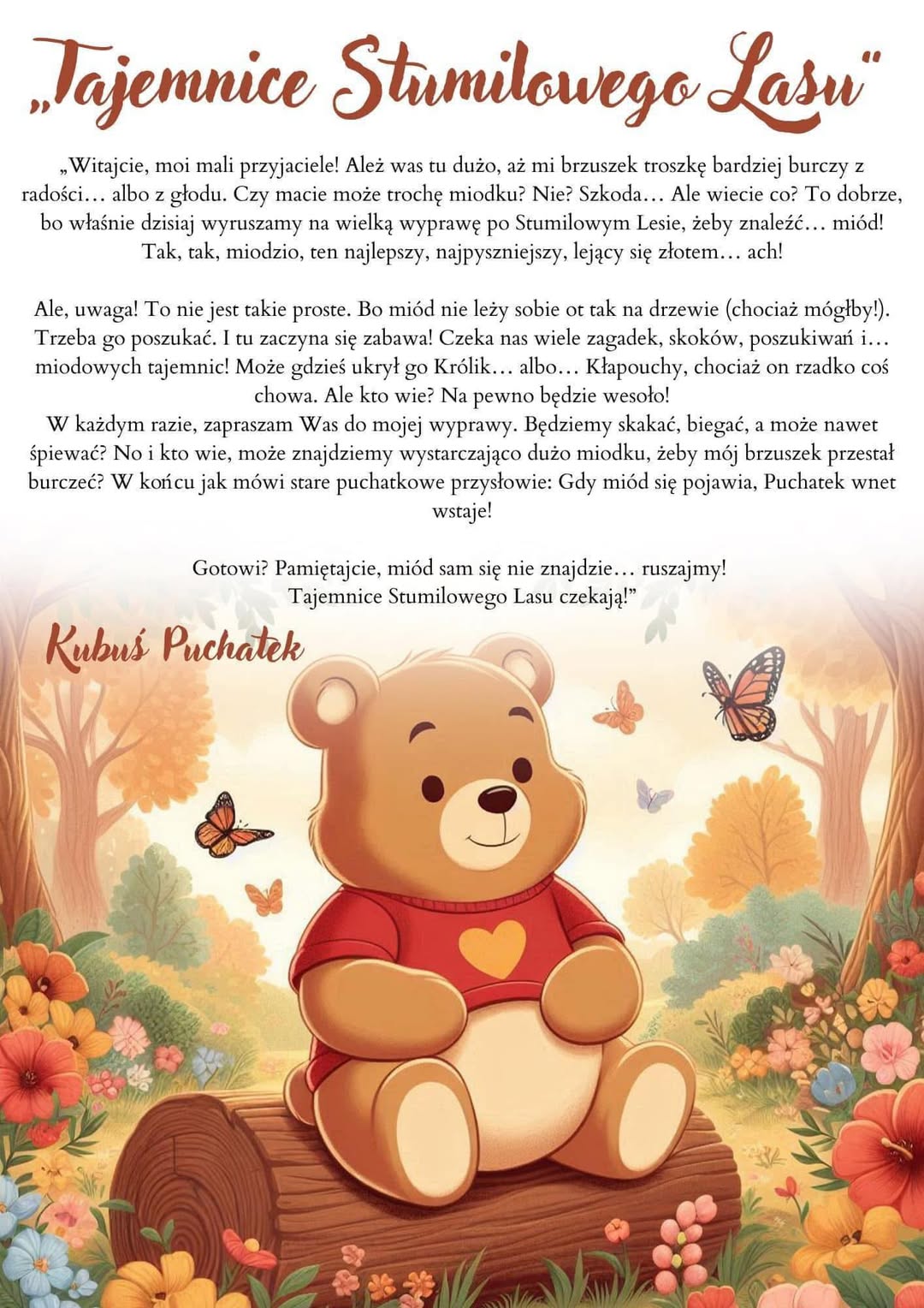 Gra terenowa do zrealizowania w sali na DZIEŃ PLUSZOWEGO MISIA-„Tajemnice stumilowego lasu”Wszystkie zadania można zrealizować w sali.