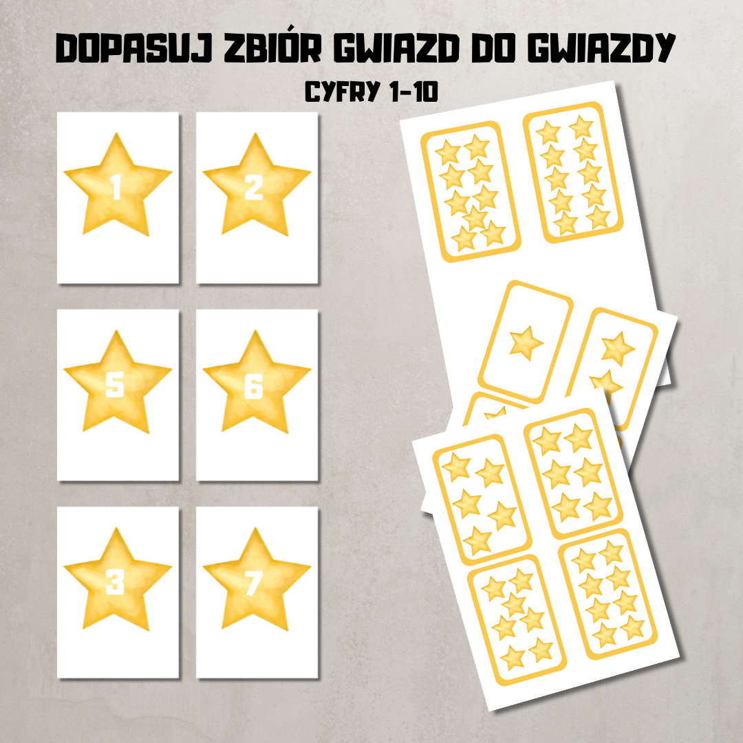 • Kosmiczna matematyka i gwiazdy-cyfry – zadania z elementami nauki liczenia i porównywania.