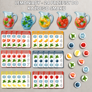 „Lemoniady” to gra edukacyjno-zręcznościowa, w której uczestnicy przygotowują pyszne napoje według wylosowanych przepisów. Każda lemoniada składa się z różnych składników, owoców, lodu i mięty. Gracze muszą dobrać odpowiednie elementy, aby stworzyć idealną kompozycję smakową!