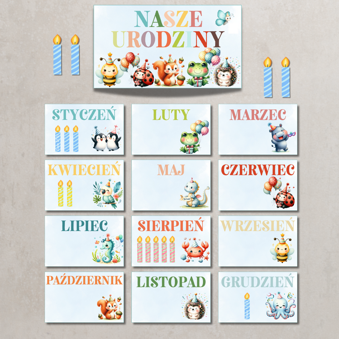 Kolorowa dekoracja sali przedszkolnej lub szkolnej, dzięki której każde dziecko poczuje się wyjątkowo w swoim miesiącu urodzin!