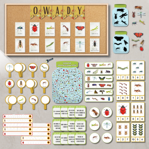Kompletny zestaw materiałów edukacyjnych do zajęć o owadach w przedszkolu i klasach 1–3 szkoły podstawowej. Zestaw rozwija wiedzę przyrodniczą dzieci, uczy rozpoznawania gatunków owadów, kształtuje spostrzegawczość oraz wspiera naukę liczenia i koordynację ruchową poprzez zabawę.