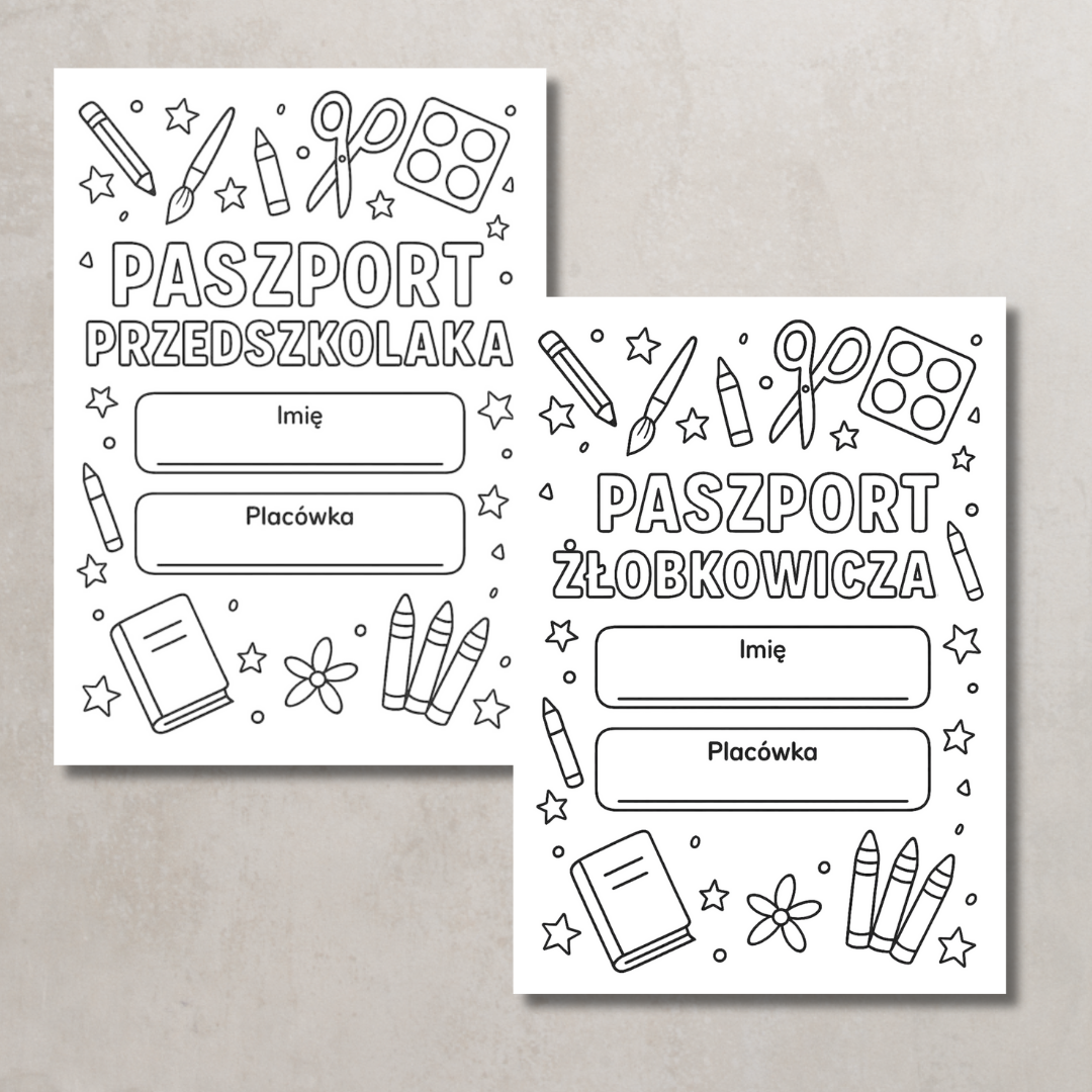 Zestaw kreatywnych kart do druku, które wprowadzają dzieci w nowy etap edukacyjnej przygody w przedszkolu lub żłobku. Paszport to wyjątkowa pamiątka pierwszych dni, pełna prostych zadań, kolorowanek i miejsc na osobiste wpisy dziecka.