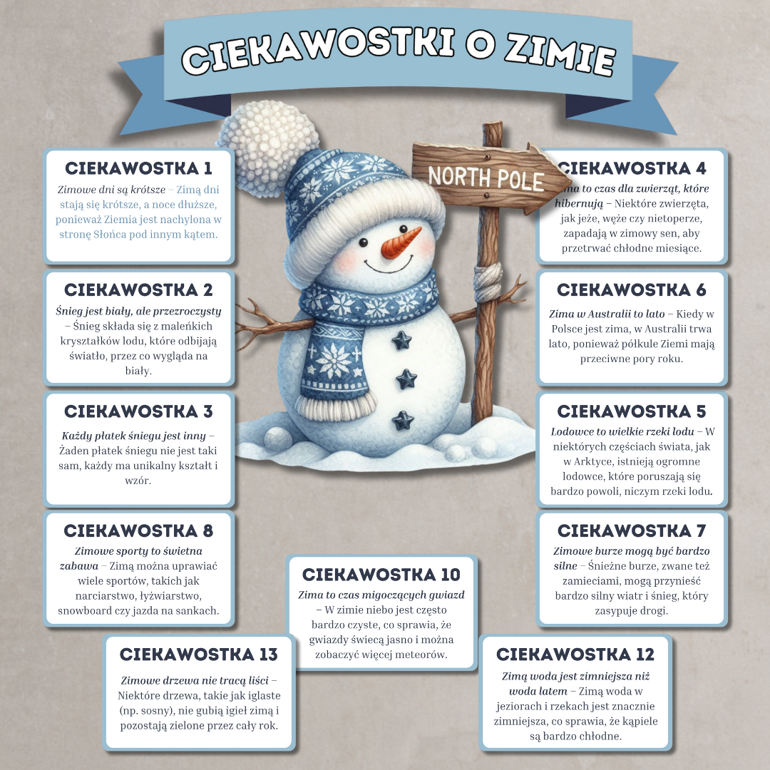 • Plakat „Ciekawostki o zimie”
