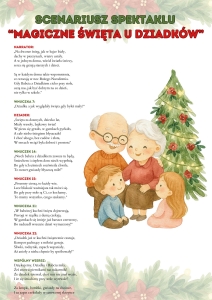 to ciepła, wzruszająca opowieść o tradycjach Bożego Narodzenia widzianych oczami dzieci. Akcja rozgrywa się w domu dziadków, do którego przyjeżdżają wnuki, aby wspólnie przeżyć Wigilię. Podczas spotkania dzieci poznają znaczenie symboli świątecznych: sianka pod obrusem, opłatka, pustego miejsca przy stole i pierwszej gwiazdki. Babcia i Dziadek opowiadają, jak wyglądały święta w dawnych czasach, a dzieci odkrywają, że najważniejsze nie są prezenty, ale bliskość, miłość i wspólne chwile.