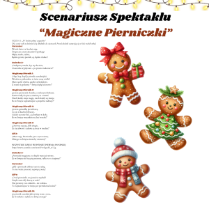 • Pełny tekst przedstawienia „Magiczne Pierniczki” z podziałem na role (23 postacie – dzieci, pierniczki i elfy),